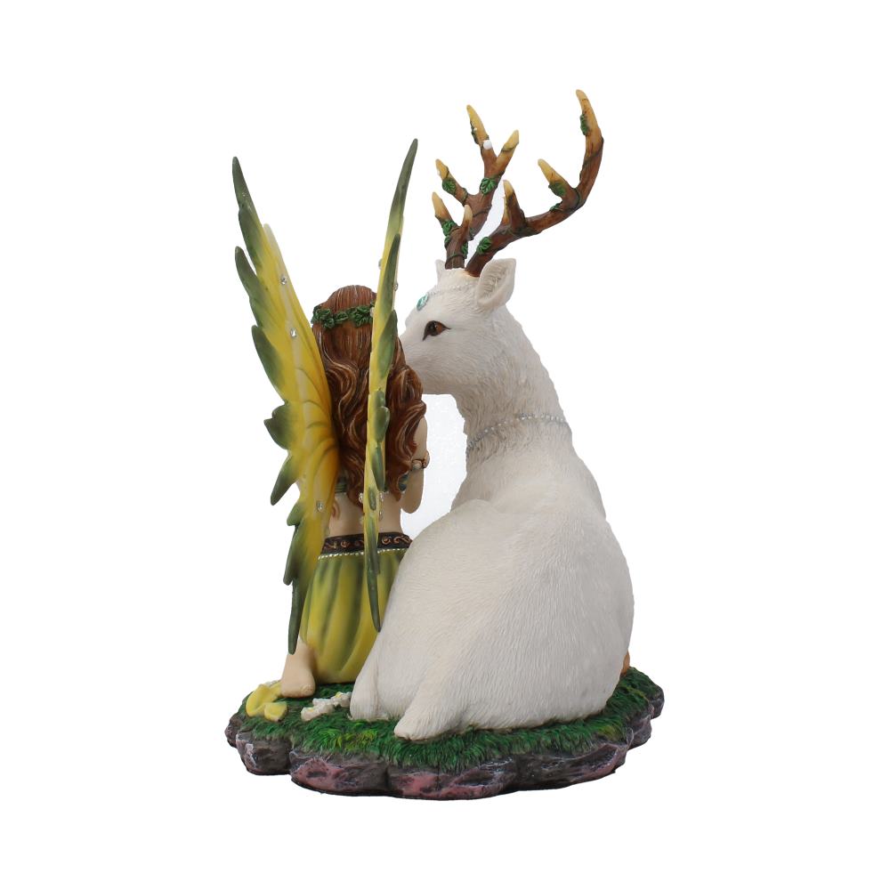 Bring Spring to your home with the Adoration figurine from Fantasy masters Nemesis Now! A young auburn-haired Fairy and a white hart sit together in a grassy meadow, flowers scattered around them. The stag is adorned with turquoise jewellery, green vines entwined with its antlers as it serenely turns to gaze at its companion. The Fairy stares rapt at it, hands raised up to its the chin in adoration. Her yellow wings are studded with jewels and fade to a deep forest green at the tips, matching her flowing sarong. A laurel wreath sits on her head, pearlescent bangles around her arms and wrists. Cast in the finest resin before being lovingly hand-painted, this fantastic Fairy figurine is perfect for any shelf or mantelpiece.