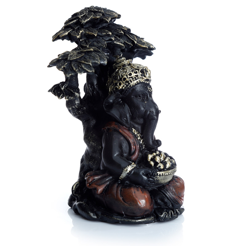Black and Gold Ganesh Sitting Under Tree