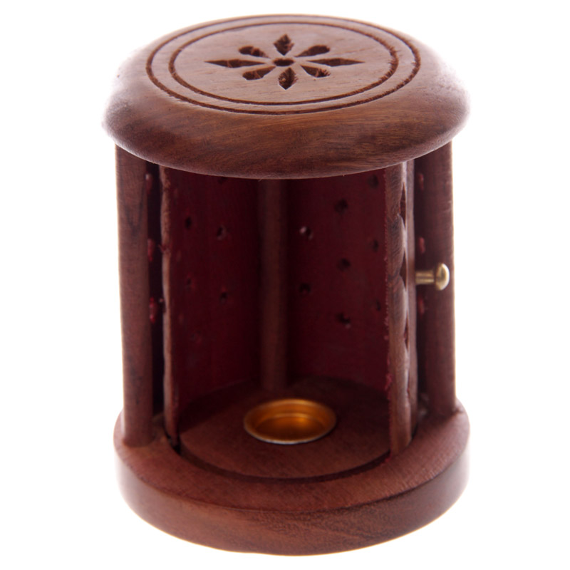 Carved Sheesham Wood Incense Holder with Sliding Door