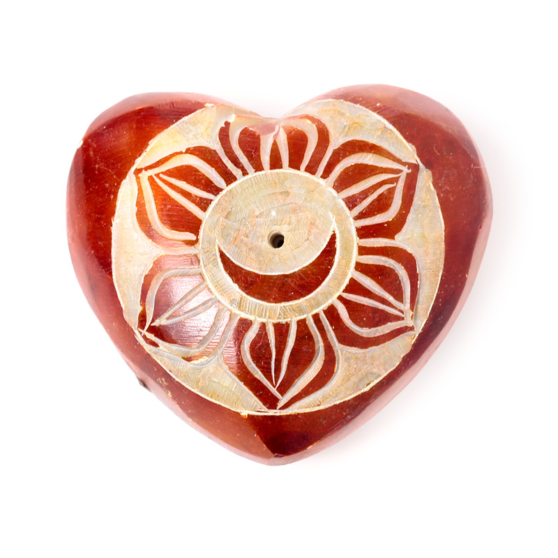Carved Soapstone Ashcatcher Incense Burner – Chakra Heart Shaped