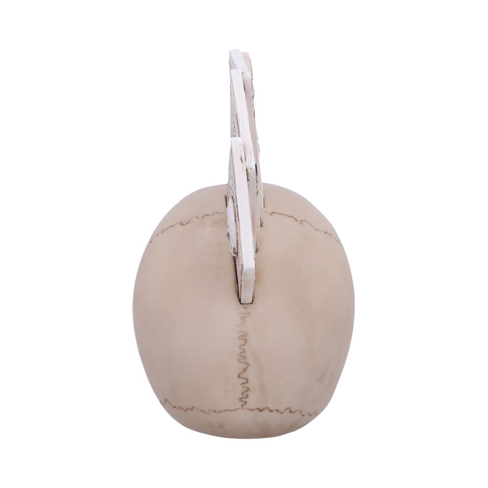 Unleash the rebellious spirit of the Four of a Kind Skull, a striking creation from Nemesis Now’s Value Collection. This bone-colored skull takes an unexpected twist with a distinctive mohawk formed by four aces, each card poking out defiantly from the top-center. Crafted from the finest resin, this unique skull stands at 18.1cm, showcasing meticulous hand-painted details that bring the macabre to life. Whether your customers are avid poker players or lovers of the unusual, the Four of a Kind Skull is a standout addition to our extensive skull-themed giftware. Created with precision and artistic flair, it adds a touch of edgy elegance to any collection. Embrace the unconventional with this extraordinary piece that captures the essence of rebellion and card-playing intrigue.