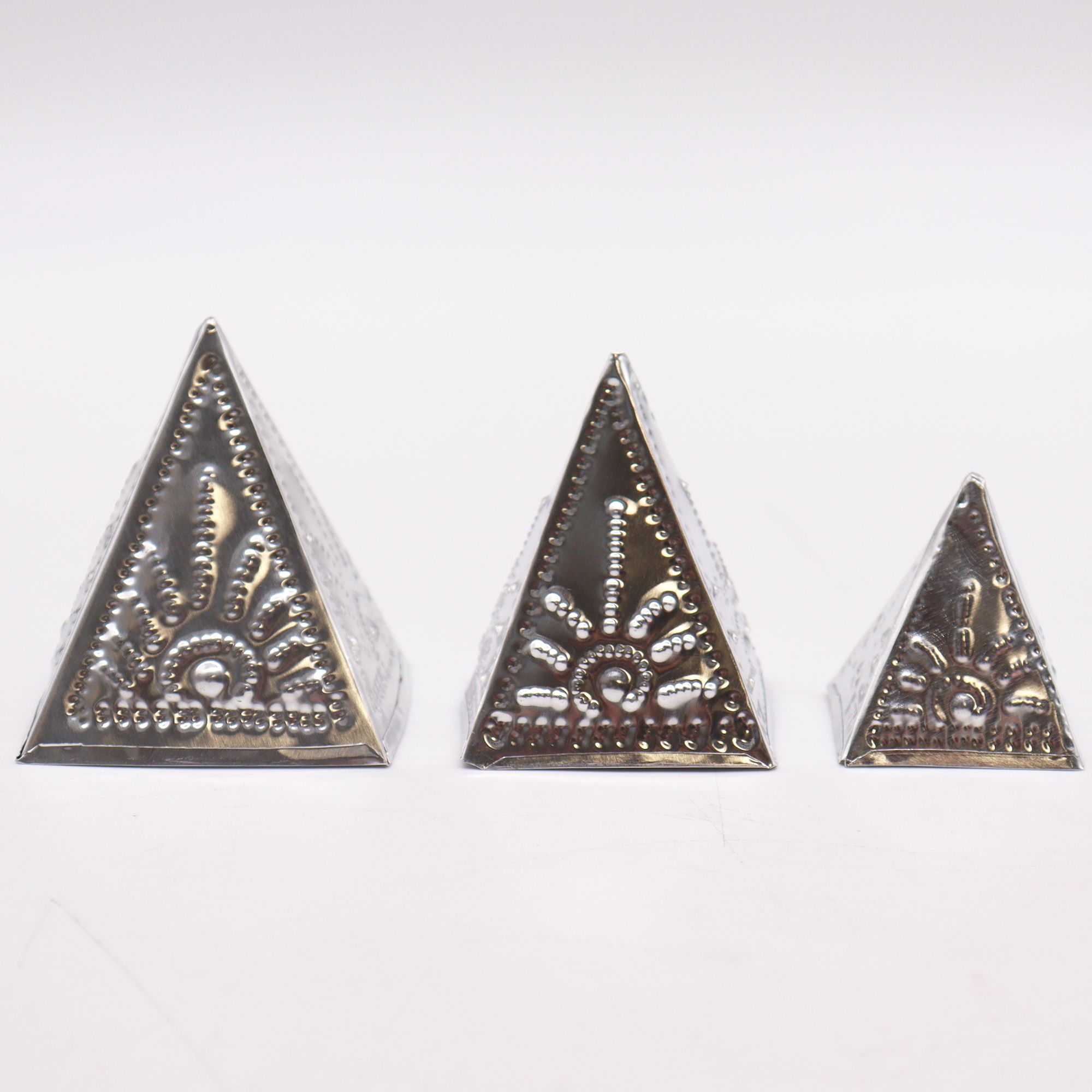 Experience the art of fragrance with our Incense Powder Mould Set Unpainted. Crafted with precision by artisans in Bali, this set of three pyramids offers unparalleled versatility in incense size. Whether you seek a burst of fragrance or a long-lasting aroma, our mould set delivers. Simply fill the pyramid mould with your preferred incense powder blend, compact it firmly, and witness the birth of a beautifully cohesive pyramid ready for burning. Sizes:Large Mould: Height 7.2 cm x Width 6 cmMedium Mould: Height 6.5 cm x Width 5.4 cmSmall Mould: Height 4.8 cm x Width 4 cm