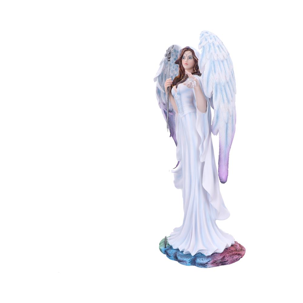 Light of the Moon Celestial Angel Figurine with Moon StaffLight of the Moon is a resin angel figurine holding a crescent moon staff and crystal orb. Finished in white and silver tones with rainbow base. Ideal for spiritual dcor and celestial displays.