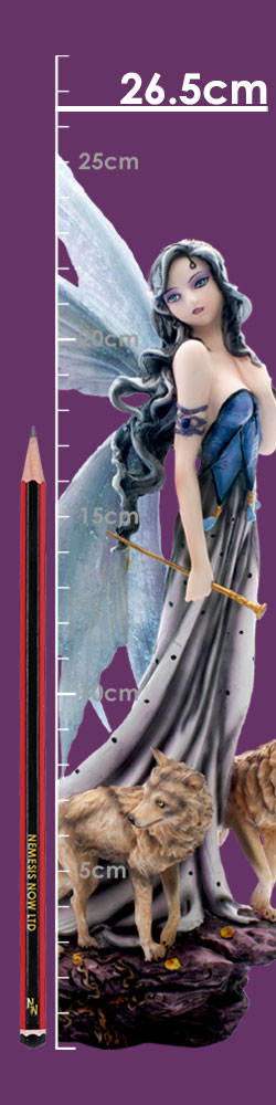 Lina (Small) Fairy Figurine with Wolves and Forest DetailLina (Small) is a small resin figurine of a winged fairy with two wolves at her feet. Features soft colour gradients, flowing textures, and a symbolic staff. Ideal for fantasy or elemental-themed retail displays.