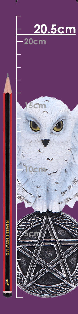 Owl Talisman featuring a detailed white owl with outstretched wings positioned above a black pentagram base. Made from durable resin with careful attention to detail, this decorative piece comes with a hanging string for easy display. The contrasting colors and symbolic elements make this a distinctive addition to any decor collection. Popular among enthusiasts of nature-inspired art, gothic decor, and symbolic pieces. The intricate detailing of the owl’s features and feathers showcases fine craftsmanship in this unique decorative item.
