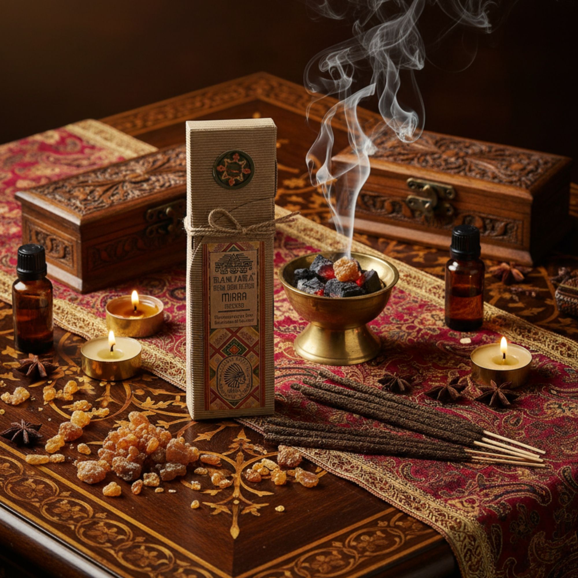 Ritual Resin on Stick – Mirra Invite calm and clarity into your space with the sacred aroma of Myrrh. Made in India, these resin incense sticks release a deep, warm fragrance that supports purification, grounding, and spiritual reflection.The pack includes eight resin sticks, designed to burn slowly for a rich and lasting aroma. Myrrh has been treasured since ancient times for its ability to cleanse energy, promote inner peace, and connect the spirit to higher realms. Its earthy, balsamic scent makes it perfect for meditation, prayer, or moments of quiet renewal.Unlike ordinary incense, resin on a stick delivers a fuller, more authentic fragrance – transforming your home into a sanctuary of calm.Presented in beautifully detailed, eco-friendly packaging, Banjara Myrrh Resin Sticks are an ideal companion for spiritual practice, ritual cleansing, or simply adding depth and warmth to your daily routine.