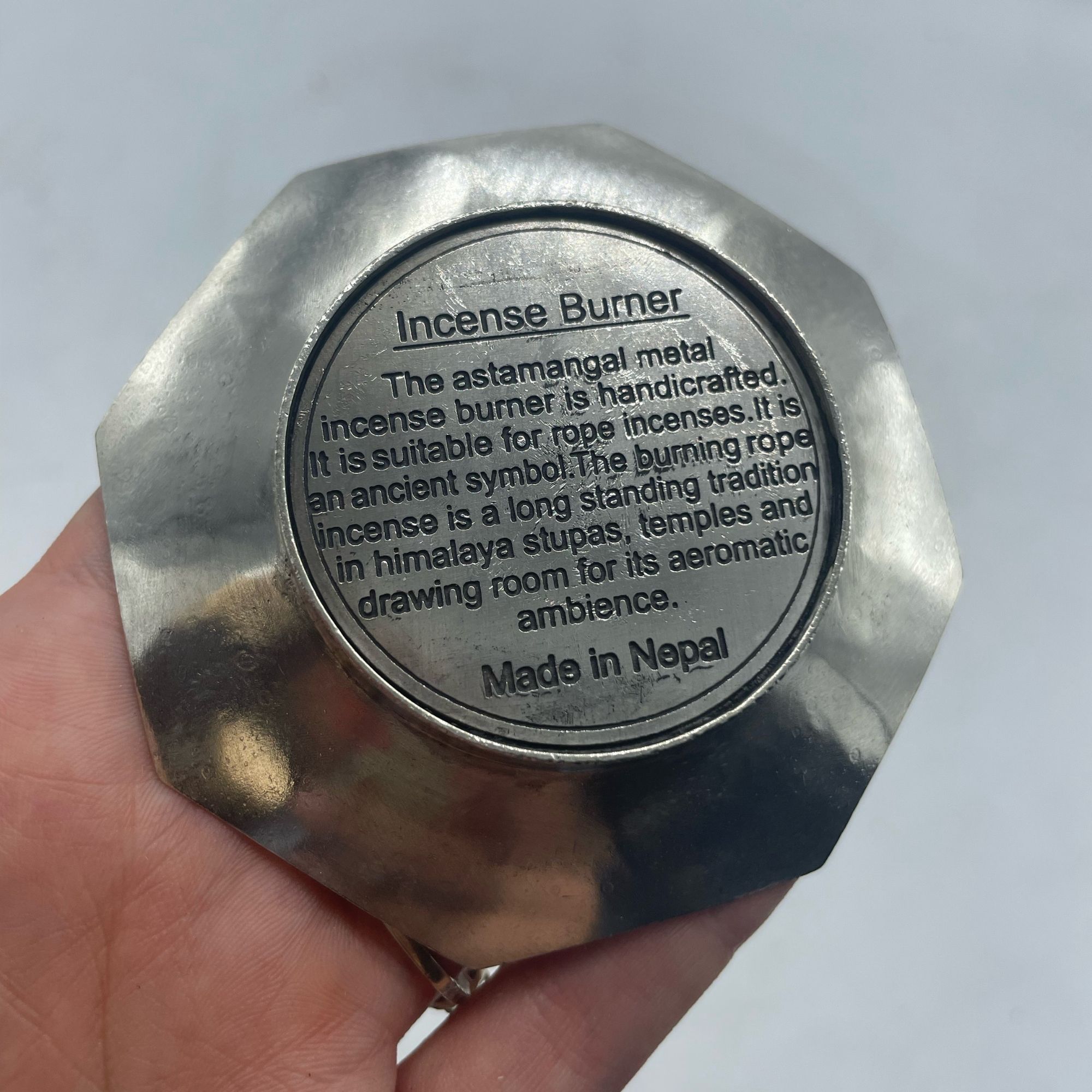 Invite divine blessings into your store with our Rope Incense and Silver Plated Holder Set – Astamangal. Inspired by the sacred Astamangal symbols, this set is a testament to spiritual harmony and auspiciousness.Astamangal symbols are eight auspicious signs in Hindu and Buddhist traditions, representing prosperity, longevity, and good fortune. Adorned on the silver-plated holder, these symbols bring divine energy and blessings to your home or sacred space.Each set includes 10 aromatic ropes, expertly hand-rolled using the finest natural ingredients. Immerse your surroundings in a fragrant blend that promotes peace, serenity, and spiritual connection. The silver-plated holder serves as a functional and decorative piece. Safely burn your incense while appreciating the intricate design that adds an aura of spirituality and elegance to your space.Our Rope Incense and Silver Plated Holder Set – Astamangal is perfect for retailers looking to offer customers a unique blend of cultural richness and spiritual significance. Whether you own a boutique, yoga studio, or holistic store, this set is a meaningful addition to your offerings.