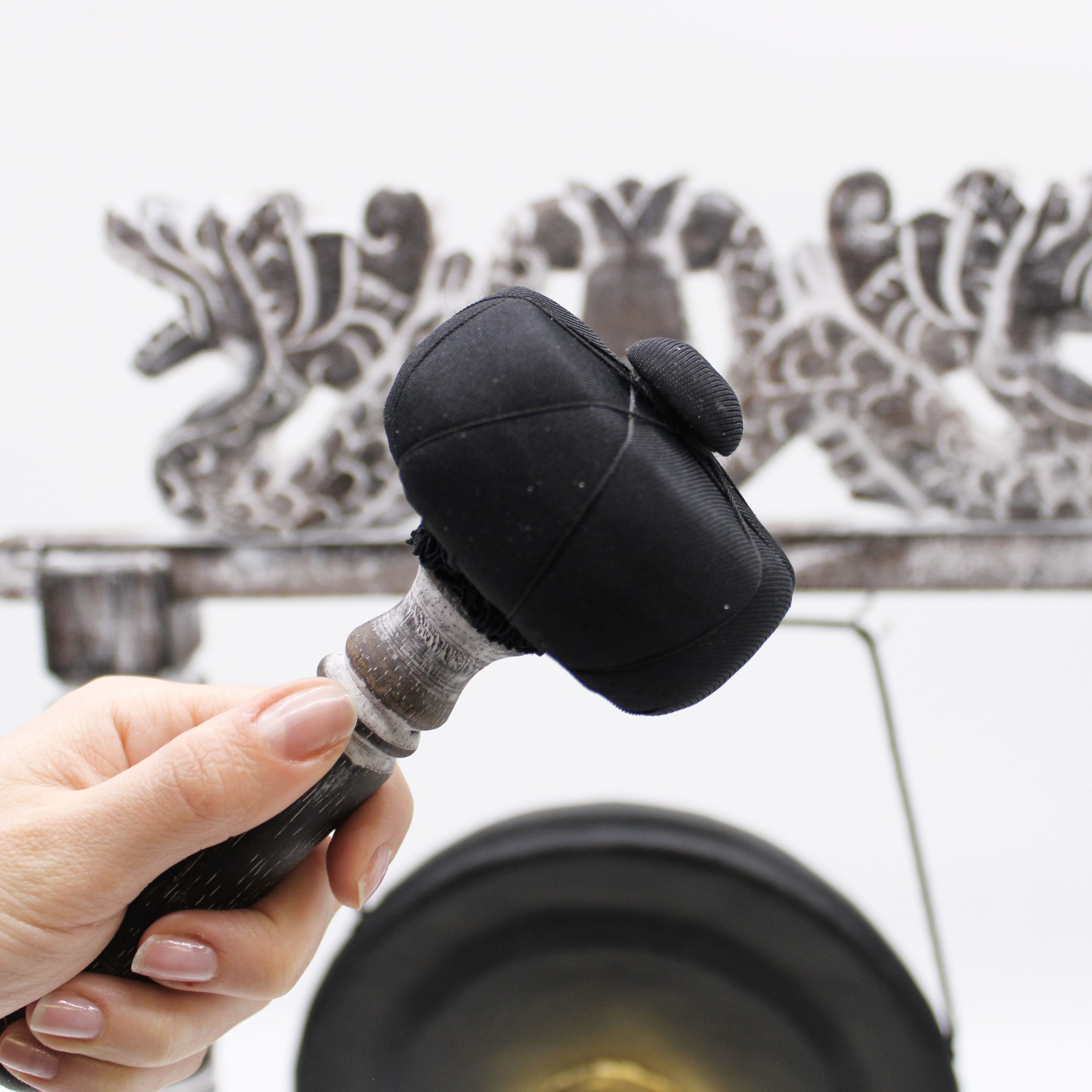 These gongs are traditionally used in Bali and Java in temple ceremonies, but these days also used in Yoga studio's. Many people believe the gong sound to have healing properties.. Sound the gong to bring peace and love into your space.The gongs comes with a sturdy wooden carved stand. Making an attractive and useful artwork. Handmade in BaliMusical, mystical and decorative. Embrace your gong, order now.Sizes and Weight:Gong: D: 25cm H;6cm Stand: H:53cm L:42cm Gong Weight: 750gMallet: 8cmTotal Weight: 3kg